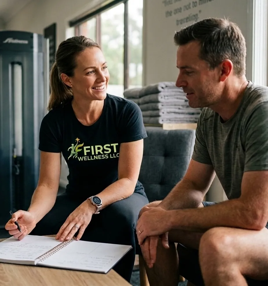 At First Wellness LLC, we offer personalized fitness and wellness services designed to help you achieve your health goals in a structured and sustainable way. Our approach combines expert coaching, customized planning, and practical strategies that support long-term success.